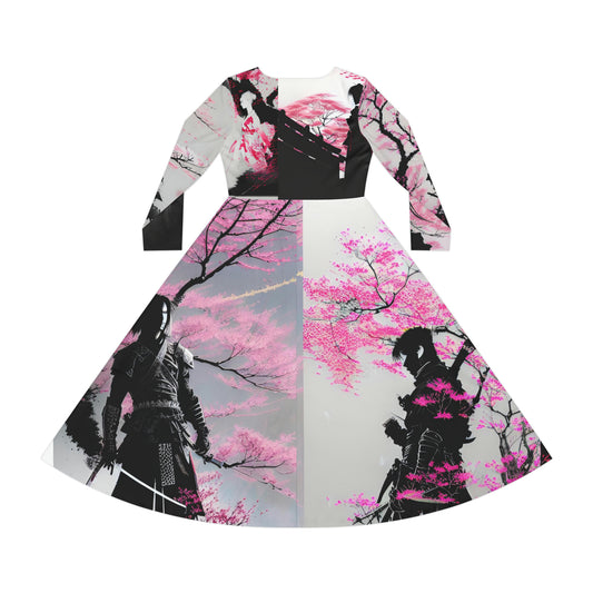 Cherry Blossom Women's Long Sleeve Dance Dress (AOP)